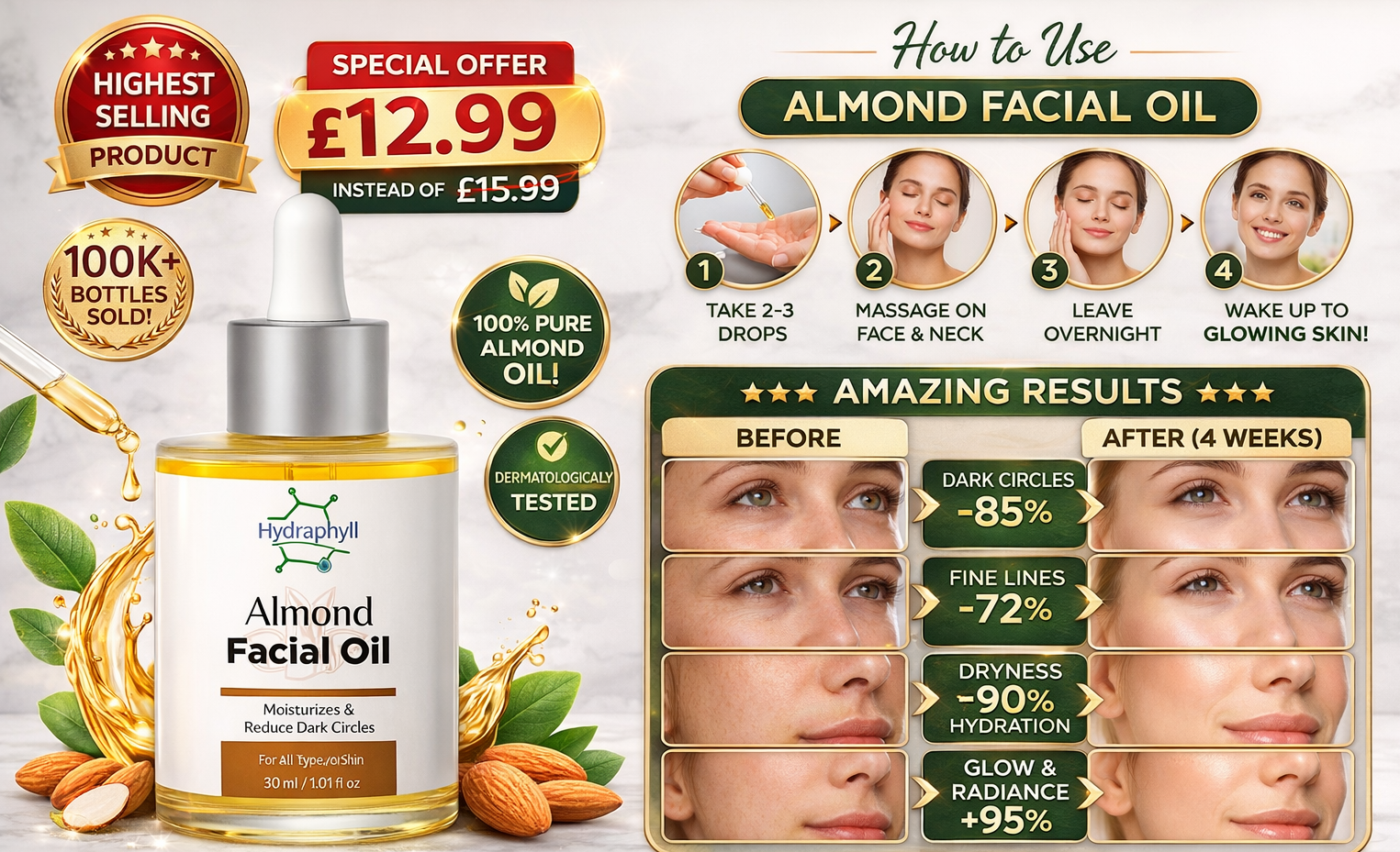 Hydraphyll™ Almond Facial Oil – 100% Natural Nourishment for Soft, Radiant Skin (30ml)