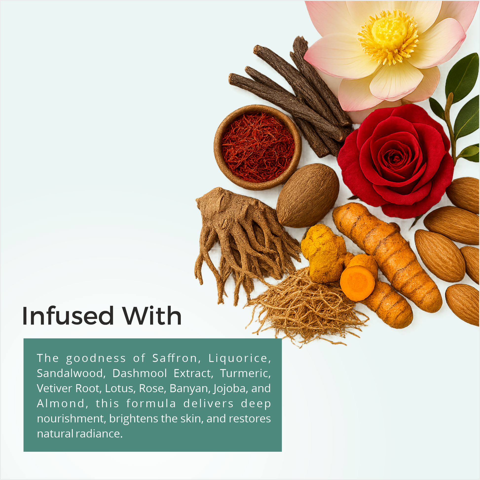 Unveil your skin’s natural luminosity with Hydraphyll™ Kumkumadi Facial Oil, a luxurious Ayurvedic blend crafted to target pigmentation, dark spots, and uneven skin tone. Enriched with the goodness of Saffron, Liquorice, Sandalwood, Turmeric, Lotus, Rose, Jojoba, Almond, and other precious herbs, this age-old formulation deeply nourishes, brightens, and rejuvenates your skin from within.